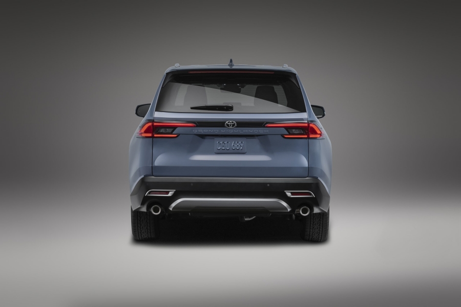 รูปลักษณ์ภายนอกเน้นความบึกบึนเป็นหลัก ด้วยดีไซน์เอาใจชาวมะกันโดยเฉพาะ ด้านหน้ามาพร้อมความแข็งแกร่งด้วยกระจังขนาดใหญ่ด้านล่าง พร้อมกระจังขนาดเล็กด้านบน ไฟหน้า LED ทรงเรียวเล็ก ขณะที่ด้านท้ายมาพร้อมไฟแนวนอนแบบแยกชิ้น คั่นกลางด้วยคิ้วฝากระโปรงท้ายติดตั้งโลโก้รุ่น Grand Highlander พร้อมแผ่นดิฟฟิวเซอร์สีเงินขนาดใหญ่