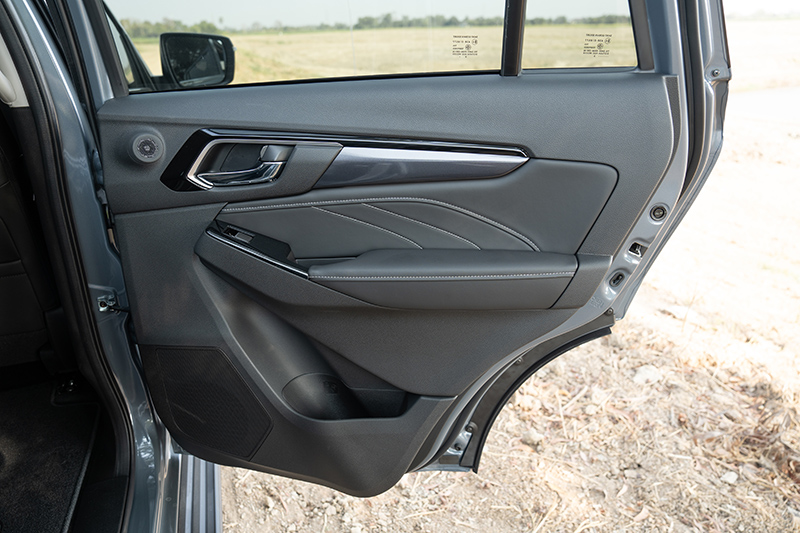 - แผงประตูหุ้มด้วยหนังสีดำ สลับด้ายสีขาว