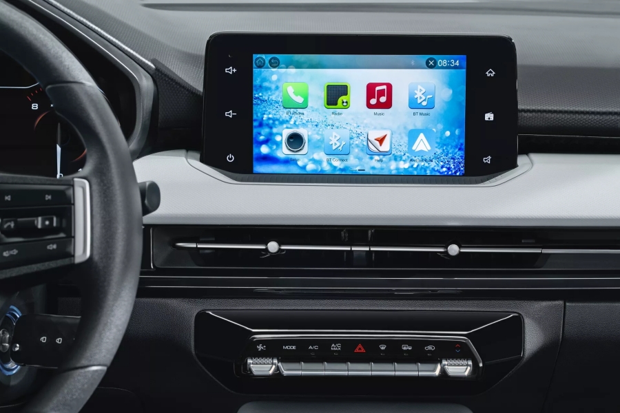 ภายในมาพร้อมความทันสมัยแบบเรียบฃ่ายเช่นเดียวกัน ทั้งจอกลางขนาด 8 นิ้ว ที่มาพร้อมการเชื่อมต่อ Apple Carplay และ Android Auto พร้อมระบบเครื่องเสียงแบบ 4 ลำโพง กล้องมองหลัง และเซนเซอร์กะระยะด้านท้าย พร้อมความปลอดภัยพื้นฐานด้วยถุงลมนิรภัยจำนวน 6 ตำแหน่ง