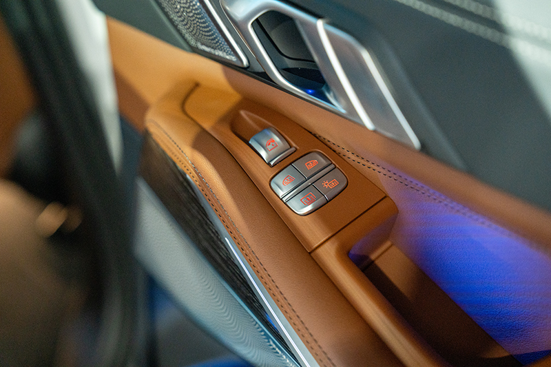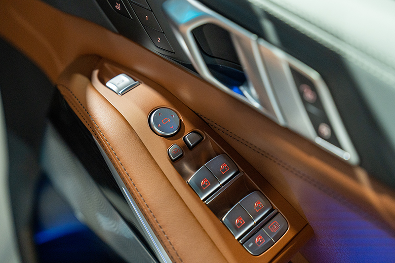 - พนักวางแขนคอนโซลกลาง และแดชบอร์ดหน้า – แผงประตู หุ้มด้วยหนังแท้ Merino