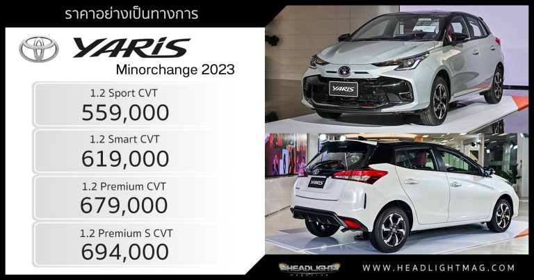 ราคาอย่างเป็นทางการ + เทียบสเป็ค Toyota Yaris Minorchange 2023 : 559,000 – 694,000 บาท