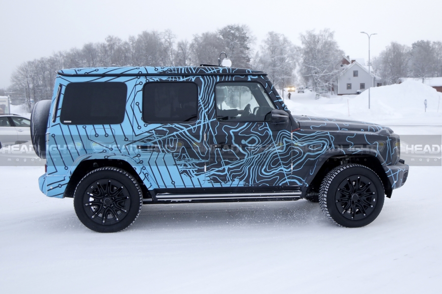 โดยล่าสุดมีภาพแอบถ่ายของเวอร์ชั่นผลิตจำหน่ายจริงของ EQG Concept ที่เปิดตัวไปเมื่อปี 2022 ที่ผ่านมา โดยมีการพรางรอบคัน แต่เป็นการพรางแบบเผยให้เห็นเส้นสายที่ชัดเจน เนื่องจากไม่ได้มีการปลี่ยนแปลงรอบคันมากมายนัก หากแต่มีการปรับแต่งลวดลายที่กระจังด้านหน้า เนื่องจากเป็นรถ EV จึงมาพร้อมกับกระจังหน้าแบบปิดบางส่วน เช่นเดียวกับรถในตระกูล EQ-series รุ่นอื่นๆ โดยที่งานออกแบบไฟหน้ายังคงเป็นทรงกลมเรโทรเหมือนรุ่นที่ใช้เครื่องยนต์สันดาปภายใน