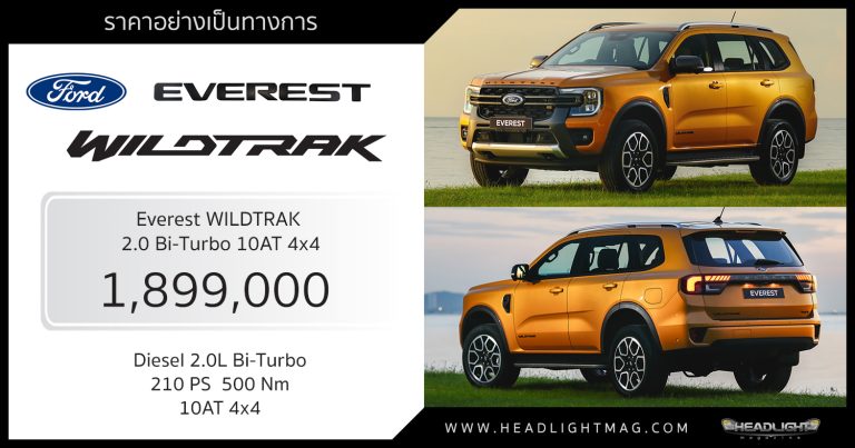 ราคาอย่างเป็นทางการ Ford Everest WILDTRAK 2.0 Bi-Turbo 10AT 4×4 : 1,899,000 บาท | ตกแต่งแบบ Wildtrak