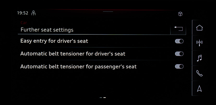 - เบาะนั่งคู่หน้าปรับไฟฟ้า พร้อมระบบปรับดันหลัง และฟังก์ชันบันทึกตำแหน่งเบาะนั่งผู้ขับขี่