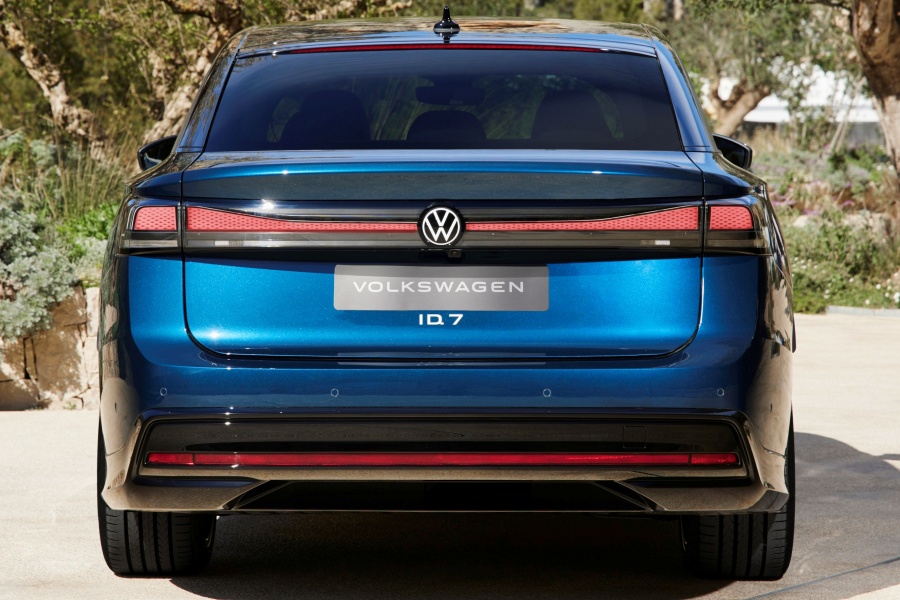 ด้านท้ายมาพร้อมไฟท้ายแบบใสตลอดโคมขนาดใหญ่ ติดตั้งอย่างโดดเด่นกินพื้นที่ของฝากระโปรงท้าย พร้อมติดสัญลักษณ์รุ่น ID.7 ไว้ที่บริเวณกึ่งกลางฝากระโปรงท้าย พร้อมแผ่นดิฟฟิวเซอร์สีดำเงาขนาดใหญ่