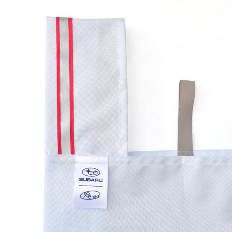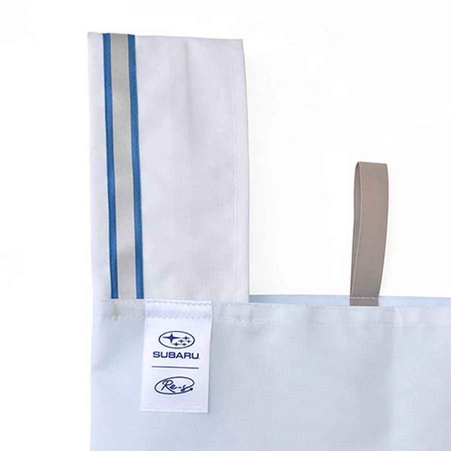 กระเป๋าถือนามว่า Subaru x Re-S Upcycled Marche มีขนาดพอเหมาะและสามารถพับเก็บใส่กระเป๋ากางเกงได้อีกด้วย โดยเมื่อกางออกมา จะมีความกว้าง 340 มิลลิเมตร สูง 550 มิลลิเมตร และหนา 120 มิลลิเมตร โดยมีความสามารถในการผ่านร้อนผ่านหนาวและการกันน้ำได้นั้น โดยมีให้เลือกด้วยกันทั้งหมด 2 แบบ 2 สี ได้แก่ สีน้ำเงินและสีแดง พร้อมแปะแผ่นสะท้อนแสงเพื่อให้เห็นเด่นชัด