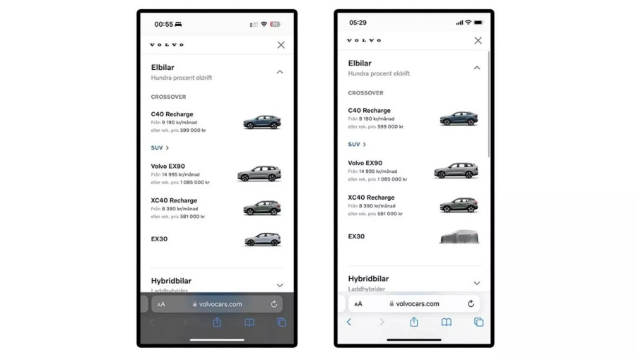 อย่างไรก็ตาม ยังคงไว้ซึ่งเส้นหลังคาแบบเดียวกับ XC40 ที่ประสบความสำเร็จได้เกินความคาดหมายทั้งด้านยอดขายและรางวัลต่างๆ นับว่าเป็นการเริ่มต้นที่สามารถส่งต่อให้รุ่นน้องสามารถนำแนวทางการออกแบบไปใช้ต่อได้ ขณะที่ EX30 ถูกปรับให้ทันสมัยและแตกต่างโดยสิ้นเชิงทั้งด้านหน้าและหลัง เพื่อให้ตอบโจทย์การเป็นรถ SUV ขุมพลังไฟฟ้าสำหรับคนเมืองได้อย่างตรงความต้องการมากที่สุด
