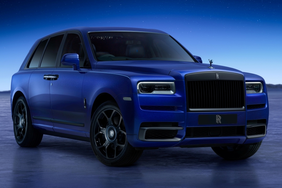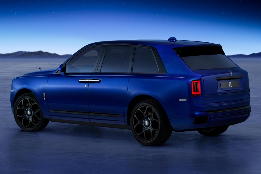 โดยสีตัวถังของ Rolls-Royce Cullinan Black Badge Blue Shadow ได้นำแรงบันดาลใจจากสิ่งดังกล่าว ที่เรียกว่า Stardust Blue ซึ่งเข้ากันกับ Black badge ที่เป็นวัสดุตกแต่งรอบคัน ขณะที่กระจังหน้าตกแต่งด้วยสีเงินซาตินเพื่อคงความหรูหราไว้เช่นเดิม เช่นเดียวกับล้ออัลลอยที่ใช้การปัดเงาหลายเลเยอร์ด้วยสีดำเหลือบ