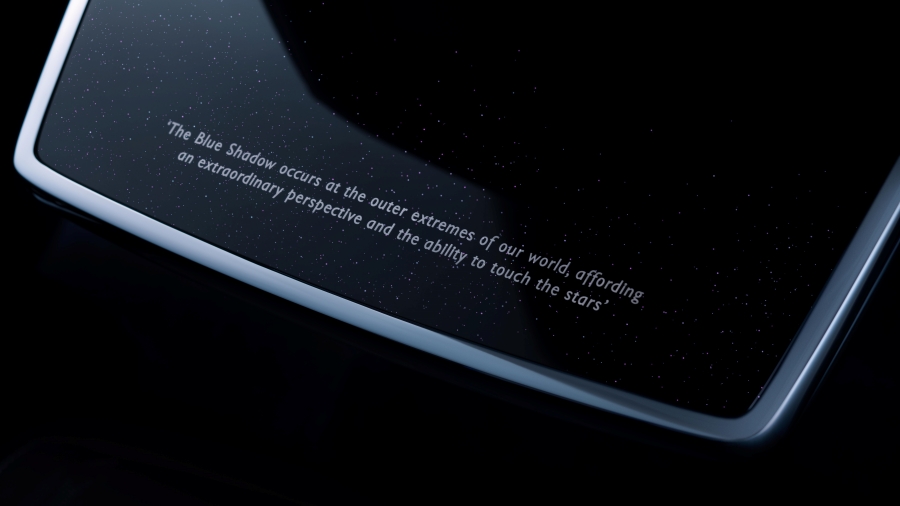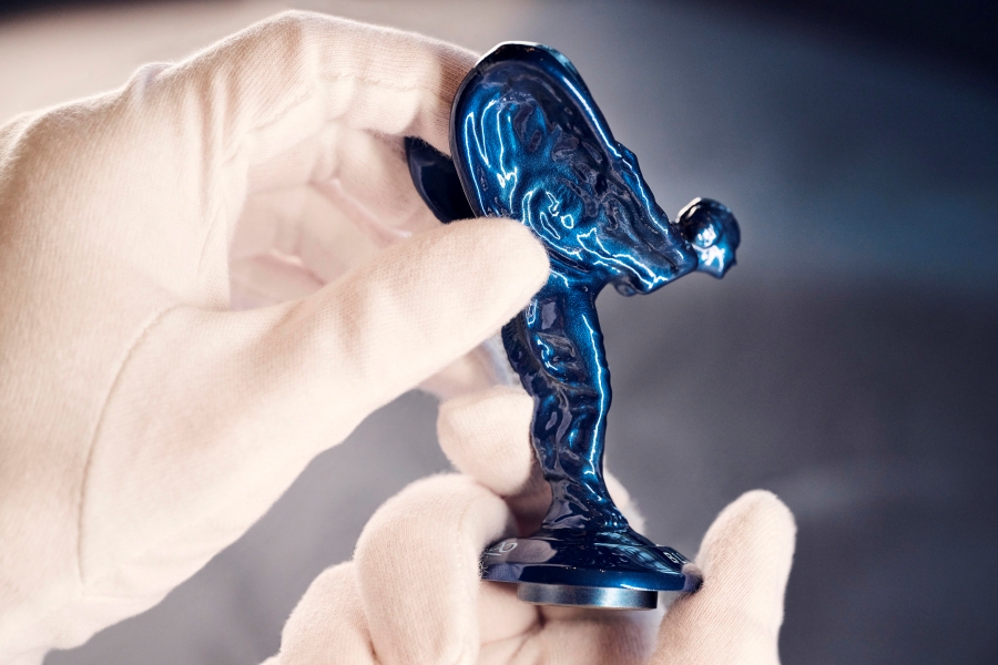 ไฮไลท์อยู่ที่ตัวสัญลักษณ์เฉพาะแบรนด์ หรือ Spirit of Ecstasy ที่ถูกออกแบบและผลิตขึ้นมาเป็นพิเศษ ด้วยกระบวนการ 3D printing ทำจากวัสดุไทเทเนี่ยมผสมผสานกับแลคเกอร์สีน้ำเงินเหลือบ Charles Blue ที่ถูกออกแบบเฉดสีมาอย่างพิถีพิถัน ทุกอย่างถูกรังสรรค์ขึ้นด้วยงานฝีมืออย่างประณีตบรรจง
