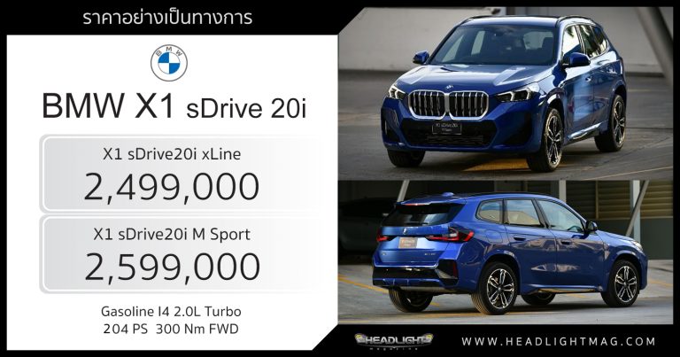 ราคาอย่างเป็นทางการ BMW X1 sDrive 20i X1 sDrive 20i x L … อ่านเพิ่มเติม ราคาอย่างเป็นทางการ BMW X1 sDrive 20i xLine / 20i M Sport : 2,499,000 – 2,599,000 บาท | เบนซิน 2.0 Turbo 204 แรงม้า