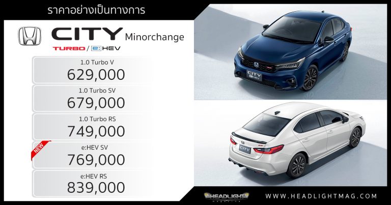 ราคาอย่างเป็นทางการ Honda City Minorchange : 629,000 – 839,000 บาท | เพิ่ม Honda SENSING ทุกรุ่นย่อย