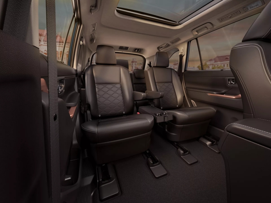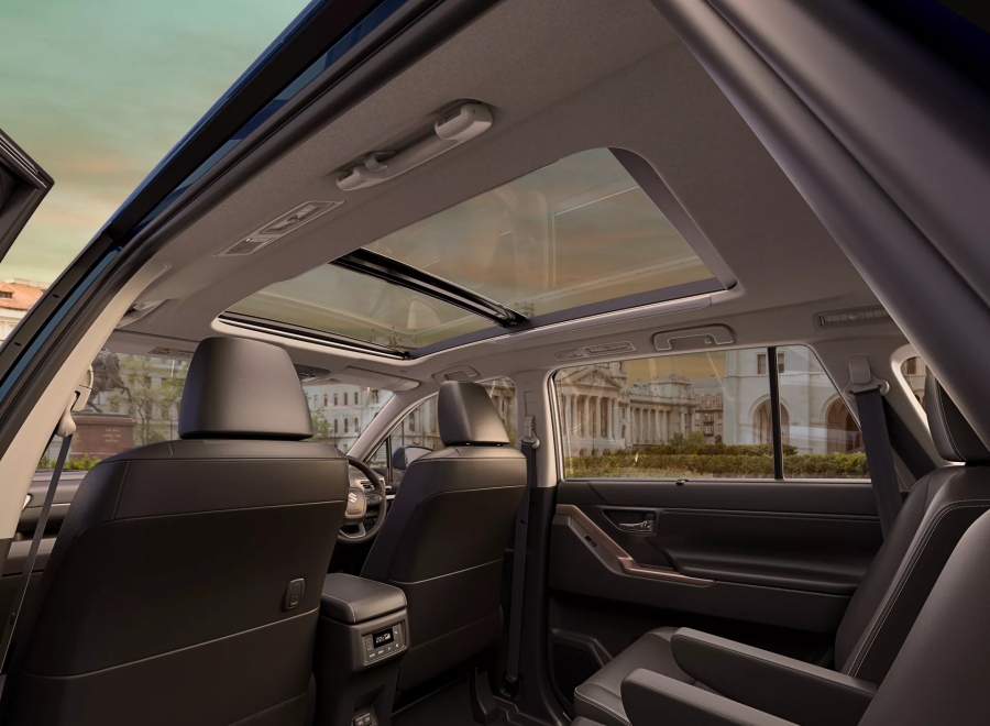 จอกลางแสดงผลกลางขนาด 10.1 นิ้ว พร้อมกล้องมองรอบคัน 360 องศา ระบบปรับอากาศแบบดิจิตอลครบทุกที่นั่งทั้ง 3 แถว ปิดท้ายด้วยหลังคา Panoramic บานใหญ่ ครอบคลุมพื้นที่แถวหน้าและแถวที่สองทั้งหมด