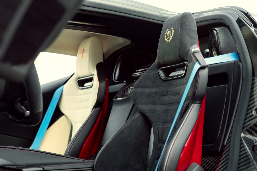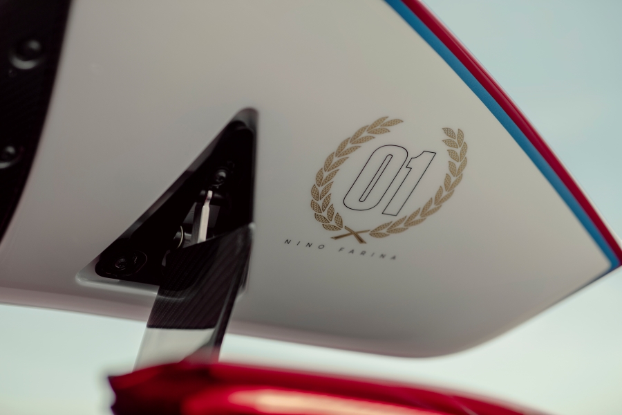 ภายในมาพร้อมกับเบาะนั่งแบบ Full bucket seat หุ้มด้วยหนังพรีเมียมสีดำสำหรับเบาะคนขับ แต่สำหรับเบาะคนนั่งกลับหุ้มด้วยหนังสีเบจ นอกจากนี้ยังประโคมไปด้วยตราสัญลักษณ์ Nino Farina รอบคัน และทริมตกแต่งวัสดุคาร์บอนไฟเบอร์และอะลูมิเนียม พร้อมเพลทบอกเลขตัวถัง บ่งบอกความพิเศษจำนวนเพียง 5 คัน