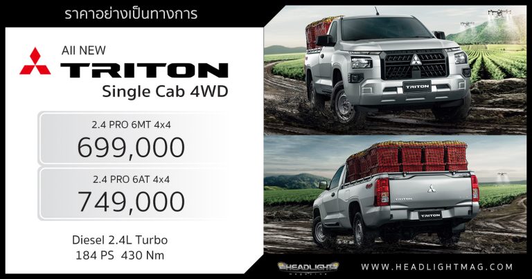 ราคาอย่างเป็นทางการ All NEW Mitsubishi TRITON ตอนเดียว ขับเคลื่อน 4 ล้อ : 699,000 – 749,000 บาท