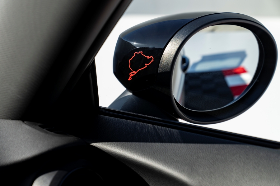 ภายนอกเพิ่มเติมโลโก้จากทีม Bulldog Racing บริเวณท้ายรถ เสา B และดุมล้ออัลลอยทั้ง 4 วง พร้อมสติ๊กเกอร์แทร็ค Nurburgring ที่บริเวณขอบด้านในของกระจกมองข้างสีดำ