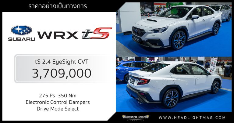 ราคาอย่างเป็นทางการ Subaru WRX tS 2.4 EyeSight : 3,709,000 บาท | Tuned by STi