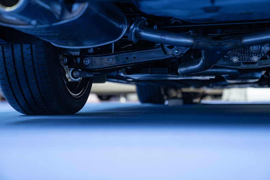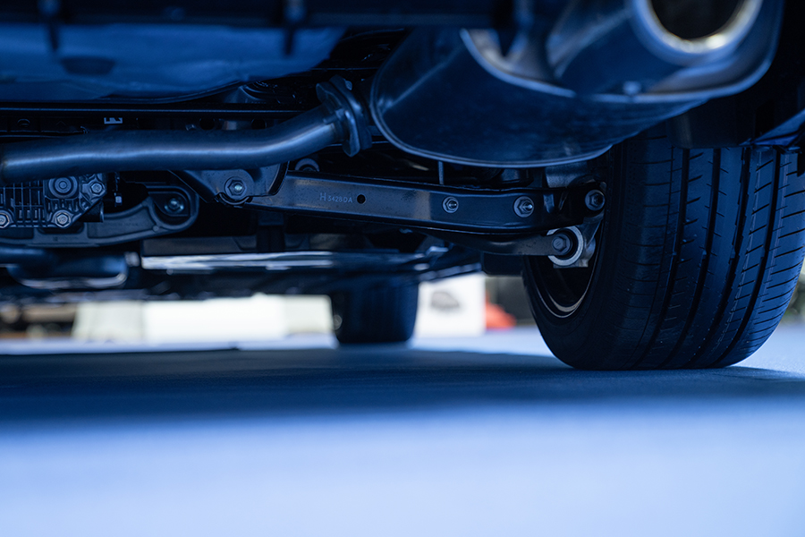 รูปแบบของระบบกันสะเทือน ด้านหน้าเป็นแบบอิสระ MacPherson Strut พร้อมเหล็กกันโคลง ด้านหลังเป็นแบบอิสระ Double Wishbone พร้อมเหล็กกันโคลง และโช๊คอัพปรับไฟฟ้า Electronic Control Dampers และระบบปรับโหมดการขับขี่ Drive Mode Select