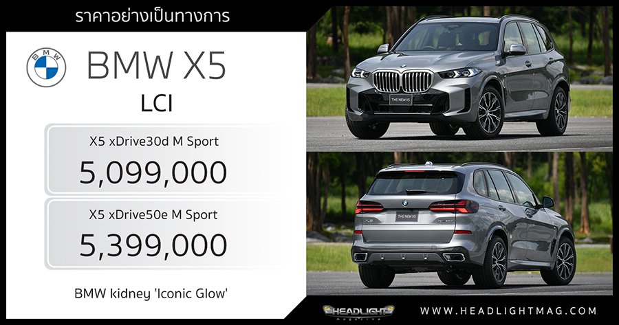 - X5 xDrive 30d M Sport : 5,099,000 บาท