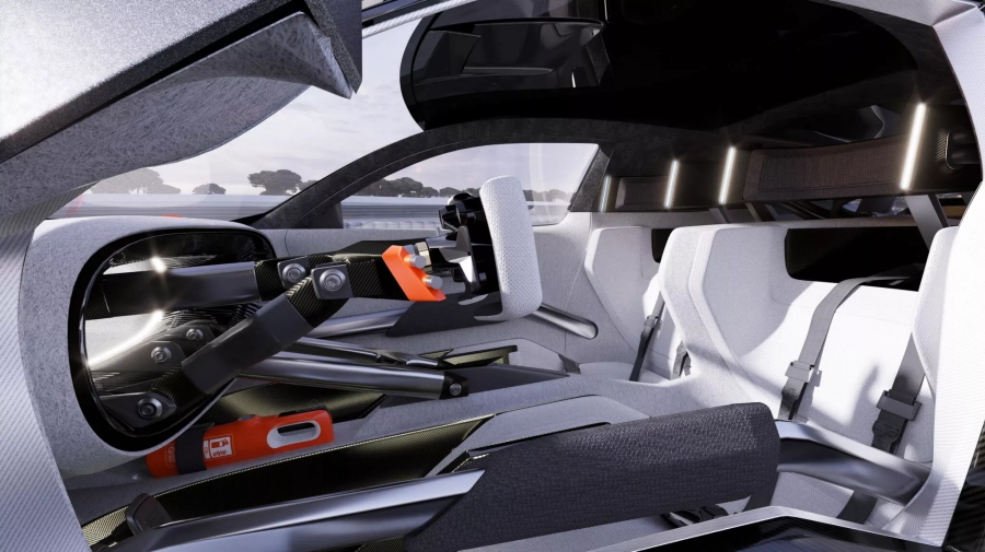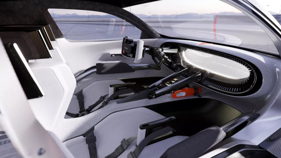 แน่นอนว่ารถต้นแบบคันนี้จัดเต็มทั้งภายนอกและภายใน โดยเฉพาะประตูที่เปิดแบบยกขึ้นเปรียบเสมือนรถ Supercar เบาะนั่งภายในแบบ Full bucket seat พวงมาลัยแบบ yoke การออกแบบคอนโซลและหน้าจอมาตรวัดสไตล์ตัวแข่ง พร้อมด้วยโครงสร้างตัวถังที่ถูกเสริมด้วยคานเหล็กด้านข้างเพื่อลดการเคลื่อนตัวของตัวถังเวลาขับขี่ด้วยแรงเหวี่ยงสูง หรือแม้กระทั่งถังดับเพลิงที่ติดตั้งมาให้แบบแนบเนียนใต้คอนโซลหน้า