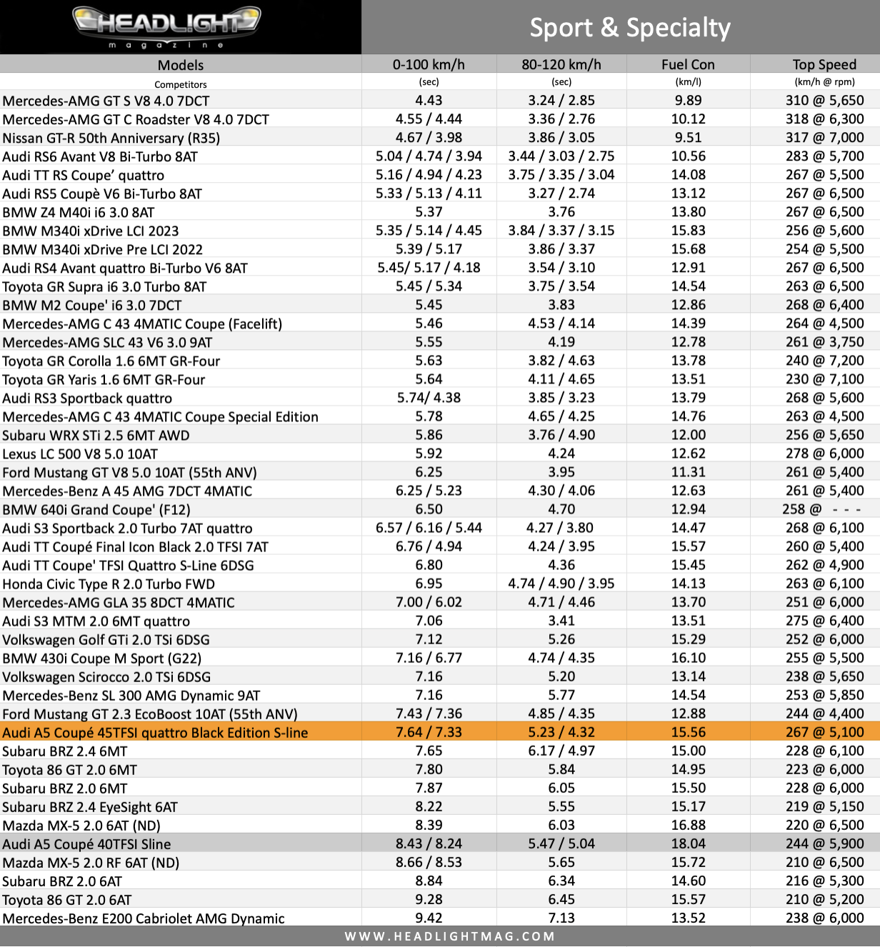 ผลทดสอบ อัตราเร่ง อัตราสิ้นเปลือง Audi A5 Coupè 45 TFSI quattro S-Line Black Edition
