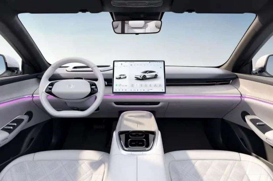 ภายในมาพร้อมกับการตกแต่งแบบเรียบง่าย โดยได้รวมหน้าจอแสดงผลข้อมูลไว้ที่หน้าจอกลางขนาด 15.4 นิ้วแบบลอยตัว ขณะที่ข้อมูลด้านการขับขี่จะถูกแสดงผลผ่านหน้าจอ Head-up display ที่ฉายลงบนกระจกบังลมหน้าขนาดใหญ่กว่า 50 นิ้ว ด้วยเทคโนโลยี AR ทั้งหมดนี้ทำงานภายใต้ชิปประมวลผล Qualcomm Snapdragon 8155 อันทรงพลังที่กำลังเป็นที่นิยมในบรรดารถจากค่ายจีนรุ่นใหม่ๆในปัจจุบัน และไม่ลืมที่จะติดตั้งแท่นชาร์จโทรศัพท์แบบไร้สายจำนวน 2 ตำแหน่ง และช่องเก็บของขนาดใหญ่
