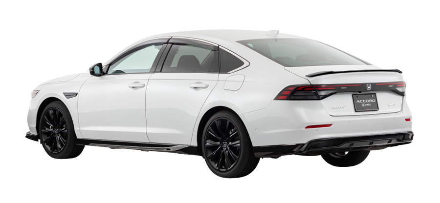 งานออกแบบภายนอกของ Honda Accord เวอร์ชั่นญี่ปุ่น ไม่ได้แตกต่างจากเวอร์ชั่นอเมริกาที่รุดหน้าเปิดตัวไปก่อนตั้งแต่ปลายปี 2022 มาพร้อมกับชุดไฟหน้าและกระจังหน้าที่มีตรงของเส้นสายมากขึ้น นั่นทำให้ดีไซน์ด้านหน้ามีความปราดเปรียวกว่ารุ่นปัจจุบัน ทว่างานออกแบบด้านข้างและบั้นท้ายกลับมีความเป็นผู้ใหญ่มากขึ้น เนื่องจากมีเส้นชายขอบล่างบานประตู และกรอบกระจกหน้าต่างแบบ Six-wondow ที่ถูกลดทอนความโค้งงอลงไป ส่วนล้ออัลลอยที่ติดตั้งมาให้จากโรงงาน เป็นลาย 5 ก้านสีทูโทนปัดเงา ขนาด 18 นิ้ว เสริมด้วยวัสดุซับเสียงรบกวนภายใน
