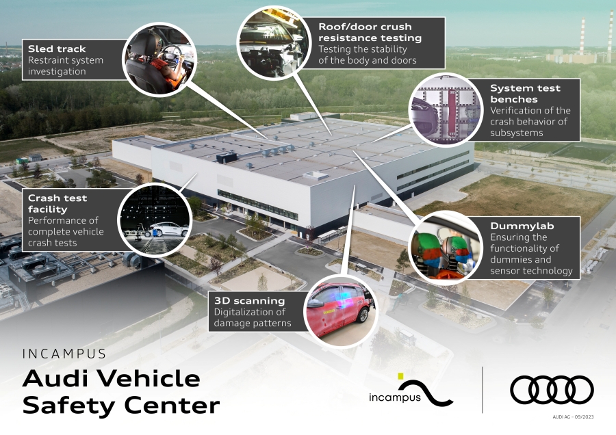Audi ได้เปิดศูนย์ทดสอบการชนแห่งใหม่ในเมือง Ingolstadt ประเทศเยอรมัน ด้วยเม็ดเงินลงทุนกว่า 100 ล้านยูโรหรือประมาณ มีจุดประสงค์หลักในการขยายขอบเขตการทดสอบรถยนต์รุ่นใหม่ๆได้อย่างมีประสิทธิภาพ โดยศูนย์ทดสอบการชนแห่งนี้มีพนักงานจำนวนกว่า 100 ชีวิตที่มีส่วนช่วยในการพัฒนารถยนต์ให้มีความปลอดภัยมากยิ่งขึ้นก่อนส่งถึงมือผู้ผลิต รวมไปถึงการสร้างตัวรถให้มีคุณภาพเป็นไปตามมาตรฐานในแต่ละภูมิภาคที่จะไปวางจำหน่าย
