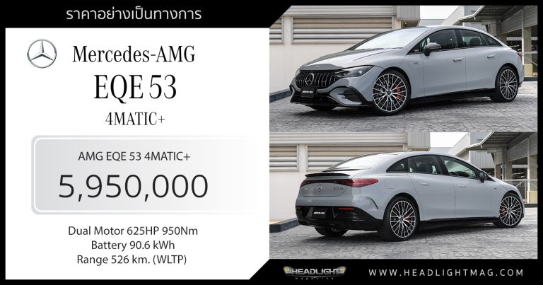 ราคาอย่างเป็นทางการ Mercedes-AMG EQE 53 4MATIC+ AMG EQE … อ่านเพิ่มเติม ราคาอย่างเป็นทางการ Mercedes-AMG EQE 53 4MATIC+ : 5,950,000 บาท (CBU) มอเตอร์คู่ 625 แรงม้า 950 นิวตันเมตร