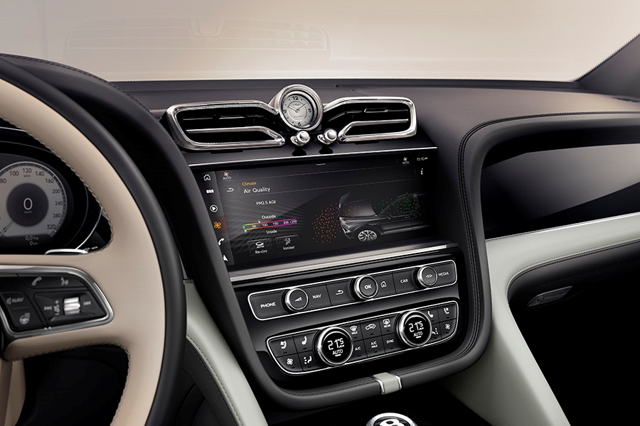โดยระบบบังคับเลี้ยว 4 ล้อ จะได้รับการติดตั้งเป็นอุปกรณ์มาตรฐานให้กับ Bentayga Azure และ S รุ่นฐานล้อสั้น เพื่อให้มีวงเลี้ยวแคบลงอย่างเห็นได้ชัด ขณะที่เบาะนั่งด้านหลังถูกถูกอัพเกรดไปใช้แบบ Airline Seat ที่ยกชุดมาจากรุ่นฐานล้อยาว โดยได้ทำการปรับขนาดและฟังก์ชั่นให้เหมาะสม พร้อมกับระบบรักษษอุณหภูมิที่ตัวเบาะแยก 2 ฝั่งอิสระ โดยจะมีเซนเซอร์วัดอุณหภูมิของผู้โดยสารแต่ละที่นั่ง เพื่อนำไปประมวลผลการควบคุมอุณหภูมิและการปล่อยลมให้เหมาะสมมากที่สุด ผ่านการประมวลผลที่ความถี่ระดับ 25 มิลลิวินาที