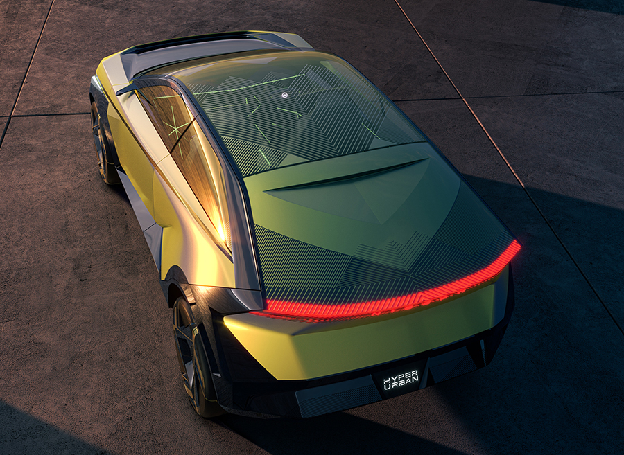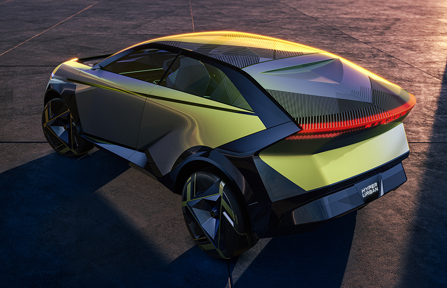 Nissan Hyper Urban Concept เป็นรถยนต์ต้นแบบที่แสดงถึงความสามารถทางเทคโนโลยีและการออกแบบรถยนต์ไฟฟ้าของค่ายในอนาคต ภายนอกมีความโดดเด่นด้วยสีตัวถัง Lime Yellow ซึ่งจะเปลี่ยนสีไปตามแสงภายนอกที่ตกกระทบ บานประตูเป็นแบบ Scissor Doors ดูล้ำสมัยตามสไตล์รถยนต์ต้นแบบ
