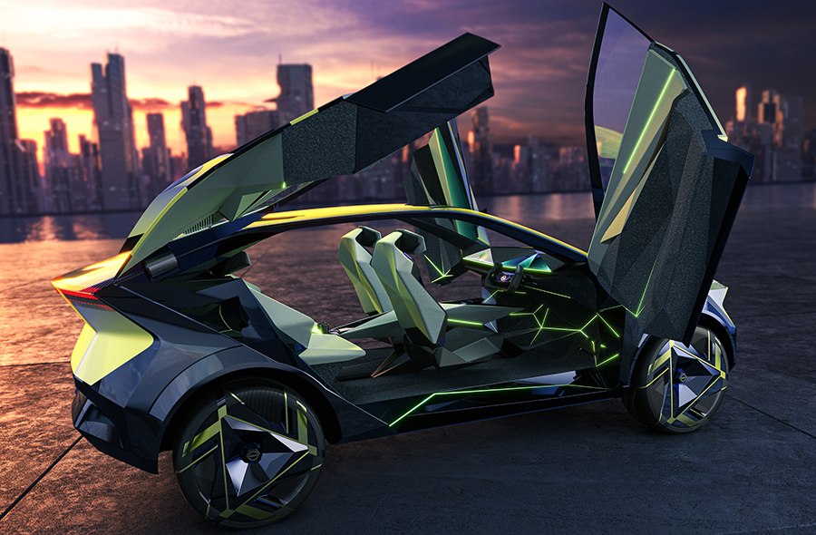 ภายในห้องโดยสารเน้นการใช้เส้นสายและรูปทรง 3 เหลี่ยมในหลายองค์ประกอบ แผงหน้าปัดและจอแสดงผลสามารถปรับแต่งได้ตามอารมณ์และความต้องการของเจ้าของรถ เบาะนั่งคู่หน้าสามารถพับและพับเก็บเป็นเบาะหลังได้ ราวกับนั่งอยู่บนโซฟาตัวใหญ่ในบ้าน