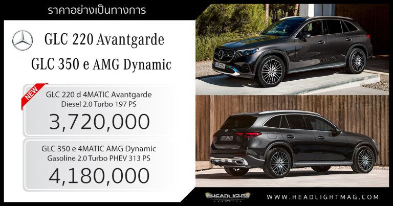 ราคาอย่างเป็นทางการ Mercedes-Benz GLC 220 d / 350 e GLC … อ่านเพิ่มเติม ราคาอย่างเป็นทางการ Mercdes-Benz GLC 220 d / 350 e : 3,720,000 – 4,180,000 บาท | เพิ่มรุ่นดีเซล 2.0 Turbo 204 แรงม้า