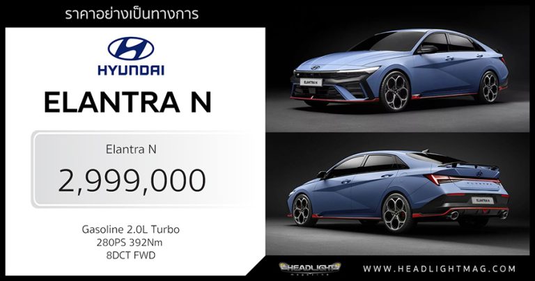 ราคาอย่างเป็นทางการ Hyundai Elantra N : 2,999,000 บาท | เบนซิน 2.0 Turbo 280 แรงม้า 8DCT FWD