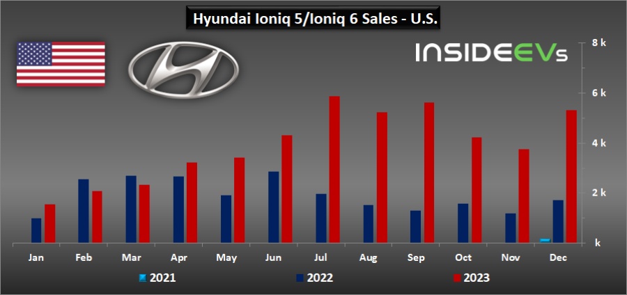 อย่างไรก็ตามสิ่งที่น่าจับตาคือยอดขายรถกลุ่มขุมพลังไฟฟ้าล้วน BEV ที่มีสองศรีพี่น้องช่วยกันสร้างชื่อและยอดขายอยู่ในขณะนี้อย่าง IONIQ 5 และ 6 ที่เติบโตขึ้นจนสามารถสร้างยอดขายรวมได้เป็นจำนวน 46,917 คัน คิดเป็นสัดส่วนเพิ่มขึ้นจากปีที่แล้วกว่า 104% และยังคิดเป็นส่วนแบ่งจากยอดขายรวม 5.9%