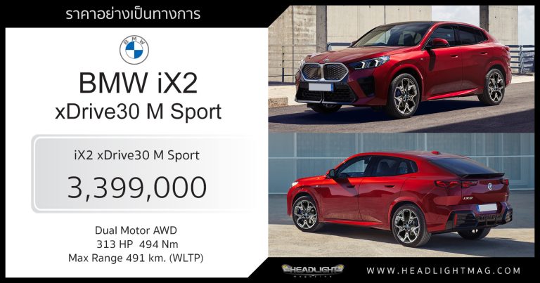 ราคาอย่างเป็นทางการ BMW iX2 xDrive30 M Sport : 3,399,000 บาท | วิ่งไกล 449 km. (WLTP)