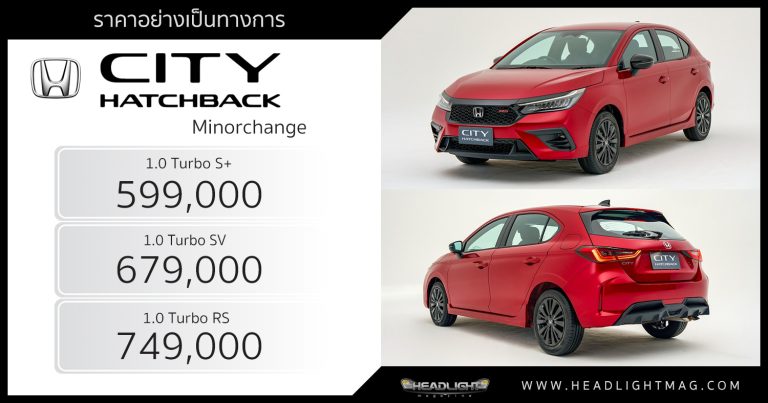 ราคาอย่างเป็นทางการ Honda City HATCHBACK Minorchange Ci … อ่านเพิ่มเติม ราคาอย่างเป็นทางการ Honda City Turbo HATCHBACK Minorchange : 599,000 – 749,000 บาท | SENSING ทุกรุ่นย่อย