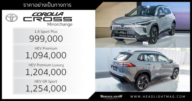 ราคาอย่างเป็นทางการ Toyota Corolla CROSS Minorchange 20 … อ่านเพิ่มเติม ราคาอย่างเป็นทางการ Toyota Corolla CROSS Minorchange : 999,000 – 1,254,000 บาท | เพิ่ม Options ราคาเดิม