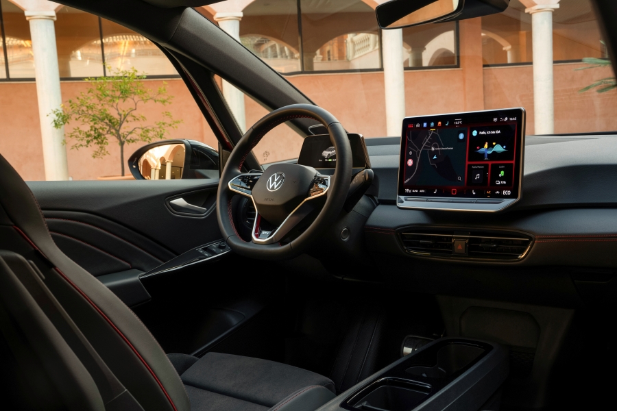 ภายในเลือกใช้โทนสีแดงตกแต่งห้องโดยสาร และยังเลือกติดตั้งเบาะนั่งทรงสปอร์ตที่ปรับได้ด้วยไฟฟ้า ประทับตรา GTX ให้โดดเด่นยิ่งขึ้น โดยวัสดุบุภายในจะเลือกใช้เป็นผ้ารีไซเคิล พร้อมด้วยจอกลางขนาด 12.9 นิ้วชุดใหม่ พร้อมด้วยการปรับปรุงปุ่มควบคุมระบบปรับอากาศชุดใหม่ใช้แบบเดียวกันกับ Golf Mk8.5 หรือรุ่นปรับโฉมล่าสุด