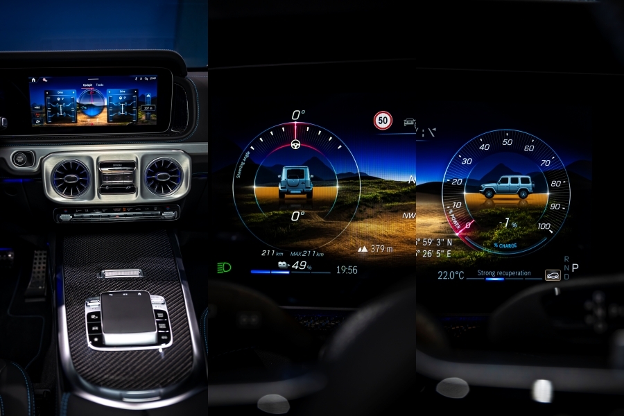ขุมพลังที่เลือกใช้เป็นมอเตอร์ 4 ตัว อิสระทั้ง 4 ล้อ ให้พละกำลังสูงสุดรวม 587 แรงม้า (PS) แรงบิดสูงสุดรวม 1,165 นิวตัน-เมตร มากกว่ารุ่น G 63 AMG อยู่ 2 แรงม้า และ 314 นิวตัน-เมตร พร้อมด้วยแบตเตอรี่ขนาดใหญ่จุใจ 116 kWh ที่มาพร้อมเกาะป้องกันแบบพิเศษไม่ให้เกิดอันตรายขณะลุย
