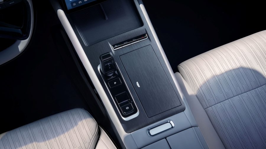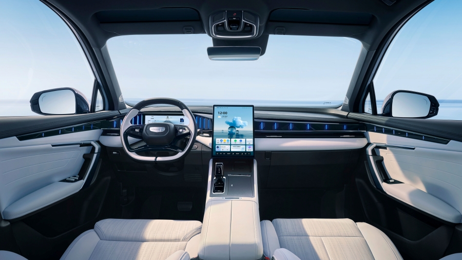 ภายในได้เพิ่มโทนสีตกแต่งสีฟ้า Bibo Bay Blue และสีขาว Moonlight Silver Sand White เป็นสีตกแต่งใหม่ พร้อมด้วยพวงมาลัยดีไซน์ใหม่ 4 ก้านแบบท้ายตัด หน้าจอกลางขนาด 13.2 นิ้ว แบบ portrait ที่รวมทุกความบันเทิงมาไว้ที่เดียว ทำงานภายใต้ระบบปฏิบัติการ Galaxy OS 2.0 ที่ใช้ชิปประมวลผล Qualcomm Snapdragon 8155 ที่ยังประสานข้อมูลต่างๆ เพื่อนำขึ้นแสดงลงบนจอมาตรวัดผู้ขับขี่ขนาด 10.25 นิ้ว