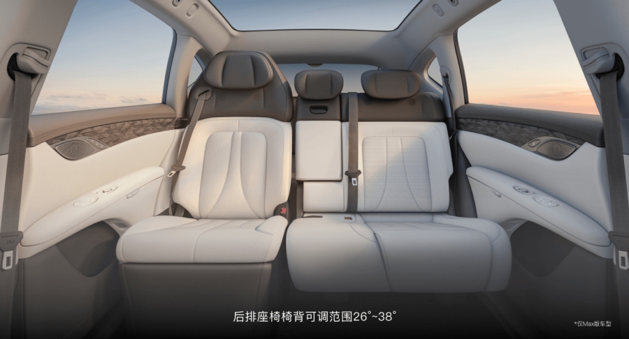 เบาะนั่งแถวหลังที่แยกส่วนระหว่างตำแหน่งด้านขวาแบบ zero gravity ออกเป็นอิสระ เพื่อให้เป็นเบาะที่สร้างความสบายสูงสุดขณะเดินทางโดยสามารถปรับเอนได้สูงสุดถึง 121 องศา มีการออกแบบเพื่อรองรับการเดินทางในรูปแบบรถซีดานหรูลิมูซีน ขณะที่ส่วนของเบาะด้านหลังที่เหลือจะสามารถปรับเองได้ด้วยระบบไฟฟ้าสูงสุดเป็นมุม 12 องศา พร้อมด้วยระยะวางขาด้านหลังยาวถึง 1,435 มิลลิเมตร