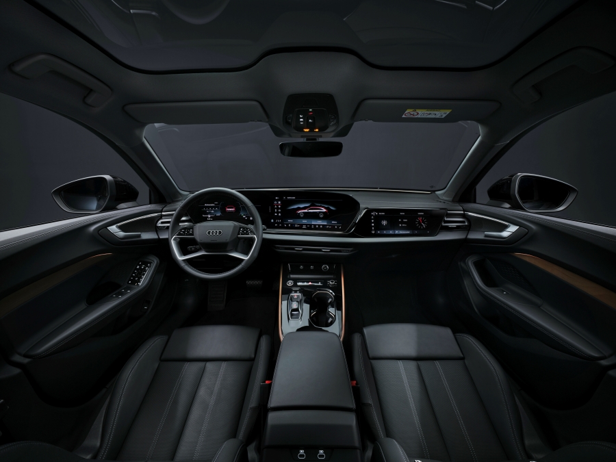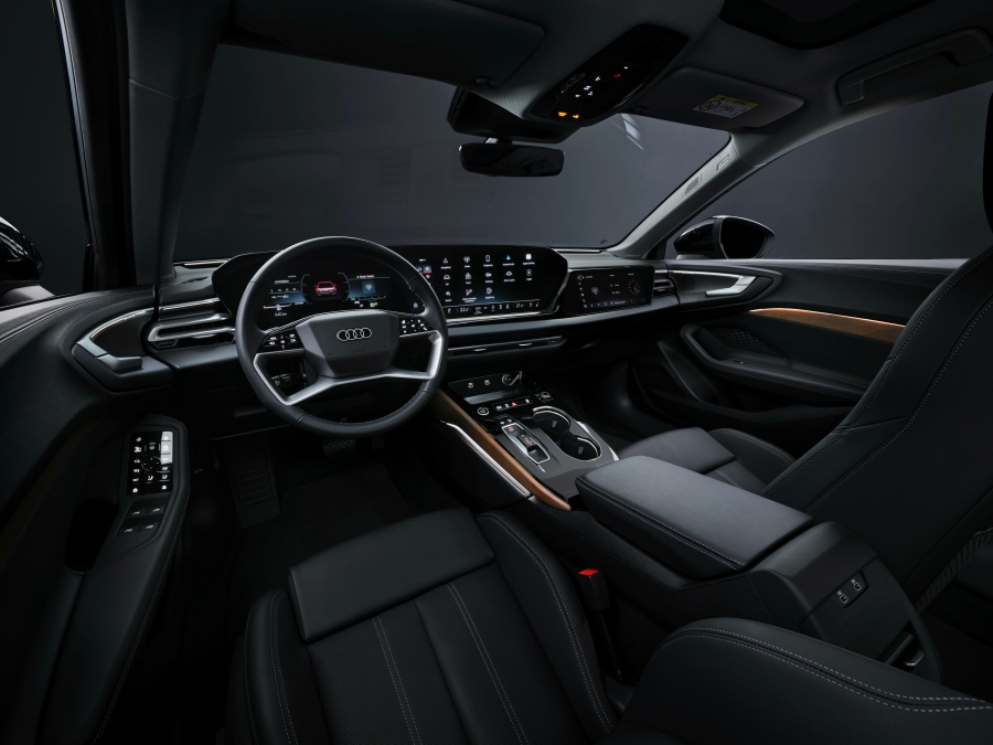 ภายในมาพร้อมหน้าจอจำนวนมากถึง 3 ชิ้น ภายหลังที่ Audi ต้านทานกระแสไม่ไหว โดยเลือกใช้แนวคิดการยึดหลักผู้ใช้เป็นศูนย์กลาง และได้ทำการปรับรายละเอียดของการแสดงผลความบันเทิงและข้อมูลทั้งจอกลางและจอสำหรับผู้โดยสารตอนหน้า รวมไปถึงการจัดระเบียบอุปกรณ์ต่างๆ ให้สามารถสั่งการได้อย่างสะดวกรวดเร็ว พร้อมด้วยอุปกรณ์มาตรฐานในรุ่นเริ่มต้นอย่าง แท่นชาร์จโทรศัพท์แบบไร้สาย ฝากระโปรงท้ายแบบเปิด-ปิดด้วยระบบไฟฟ้า รวมไปถึงระบบแผนที่นำทาง