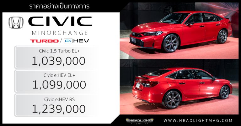 ราคาอย่างเป็นทางการ Honda CIVIC Minorchange 2024 Civic … อ่านเพิ่มเติม ราคา + เทียบสเป็ค Honda CIVIC Minorchange : 1,039,000 – 1,239,000 บาท | ปรับดีไซน์ เพิ่มอ็อพชั่น e:HEV ถูกกว่าเดิม !