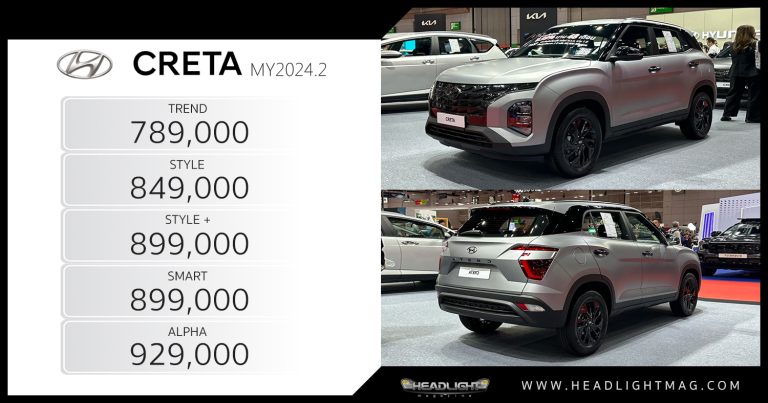 ราคาอย่างเป็นทางการ Hyundai Creta (MY2024.2) : 849,000 – 929,000 บาท | เพิ่มรุ่น ALPHA สีเงินด้าน