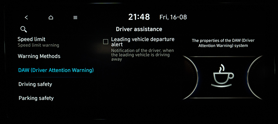 - ระบบช่วยเตือนอาการเหนื่อยล้า DAW (Driver Attention Warning)