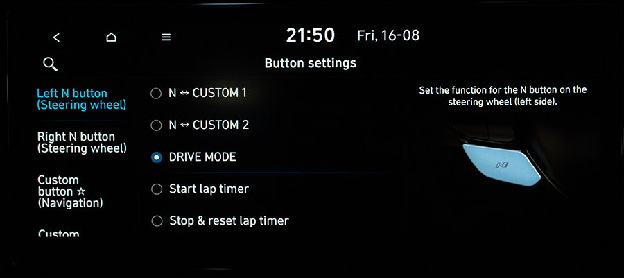 - โหมดการขับขี่ N (N, N Custom 1, N Custom 2)