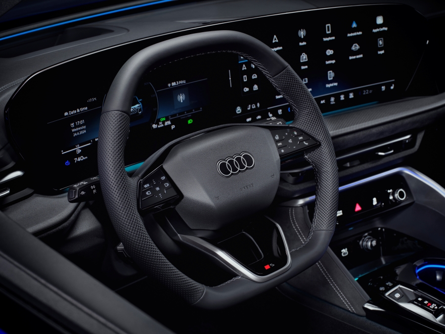 นอกเหนือไปจากนี้ยังมี หน้าจอ Head-Up Display ซึ่งมีขนาดใหญ่กว่ารุ่นก่อนหน้าถึง 85% และสามารถใช้งานได้จากพวงมาลัย รวมไปถึงผู้ช่วยส่วนตัว Audi Assistant ใหม่ ที่ใช้ ChatGPT ตอบคำถามต่างๆ ได้อย่างแม่นยำ ชุดเครื่องเสียงจาก Bang & Olufsen Premium ที่มาพร้อมแอมพลิฟายเออร์กำลังขับ 685 วัตต์และลำโพงจำนวนทั้งหมด 16 ตัว และระบบช่วยลดเสียงรบกวนภายใน Vehicle Noise Compensation (VNC)