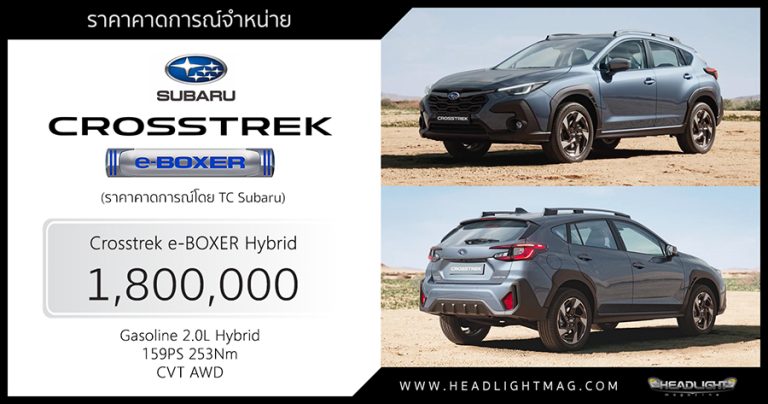 ราคาคาดการณ์ All NEW Subaru Crosstrek (XV) Subaru Cross … อ่านเพิ่มเติม ราคาคาดการณ์ All NEW Subaru Crosstrek e-BOXER Hybrid (XV) : เริ่มต้น 1,800,000 บาท | เปิดตัวต้นปีหน้า !
