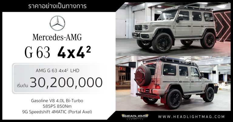 ราคาอย่างเป็นทางการ Mercedes-AMG G 63 4×4² (4× … อ่านเพิ่มเติม ราคาอย่างเป็นทางการ Mercedes-AMG G 63 4×4² (Squared) : เริ่มต้น 30,200,000 บาท | V8 4.0 Bi-Turbo 585 แรงม้า