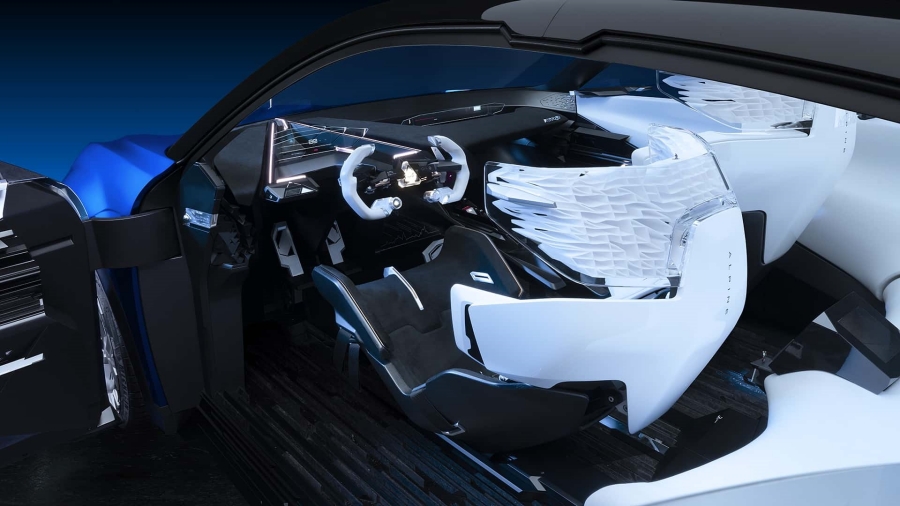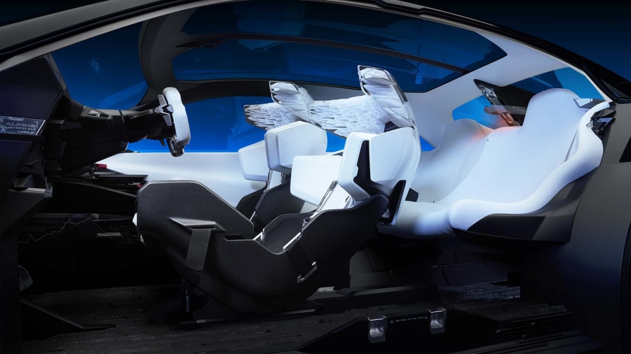 งานออกแบบภายในได้รับแรงบันดาลใจมาจากรถแข่งสูตร 1 หรือ Formula 1 ตัวได้ทำการติดตั้งเบาะนั่งแบบลอยตัวแยกส่วนรวมกันกลายเป็น 5 ที่นั่ง เป็นทางเลือกนอกเหนือจากรถสปอร์ตรุ่น A110 และรถ Hot Hatch ขุมพลังไฟฟ้าล้วนรุ่น A290 ที่เป็นการนำรถรุ่น Renault 5 มาพัฒนาต่อยอด